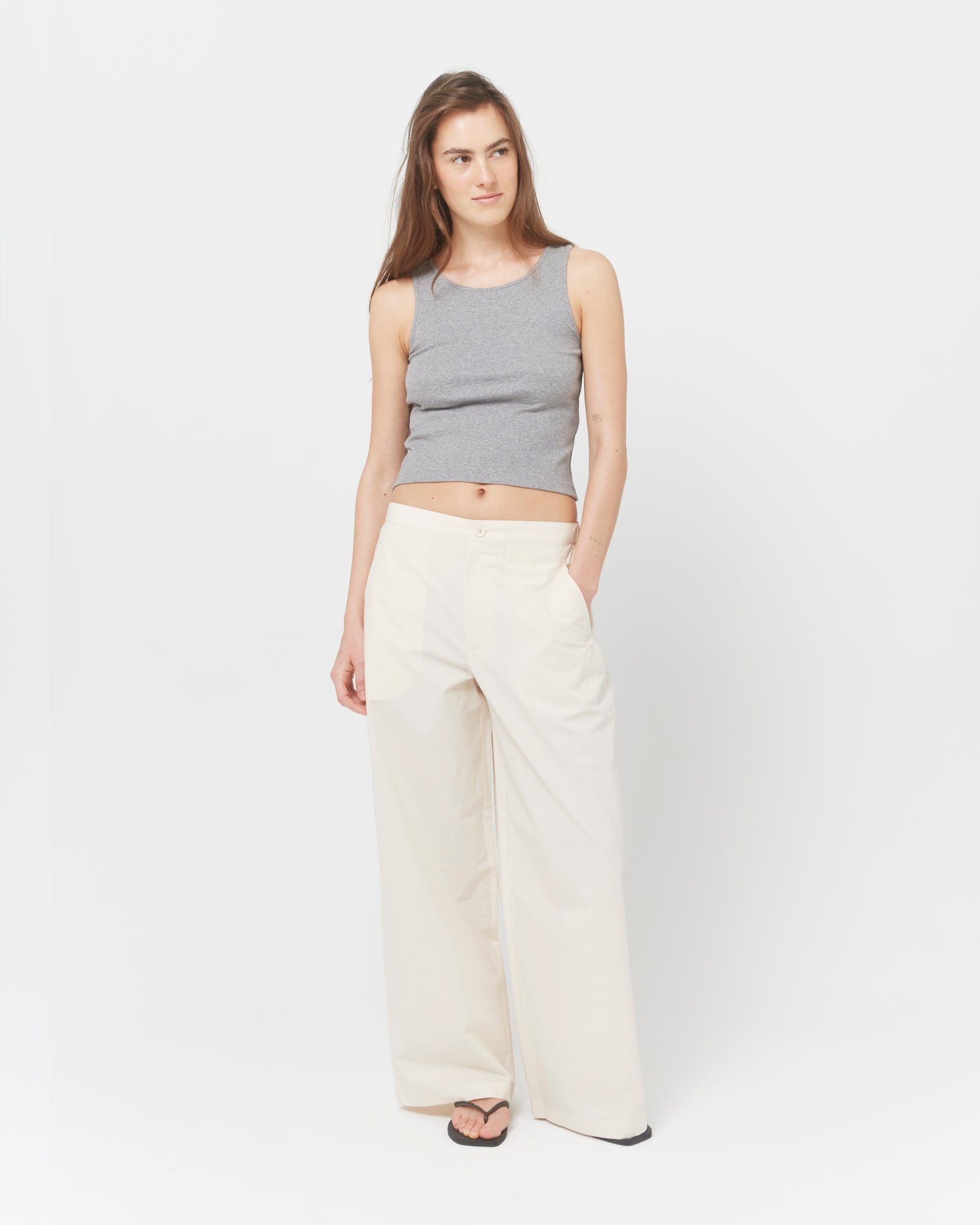 A cropped rib tank in a premium cotton jersey yarn for elevated feel. High neck opening for nuanced detail.
